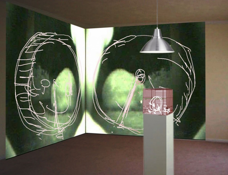 Voorstel:In een ruimte staat op een sokkel een bak met knaagdieren (muizen of ratten),