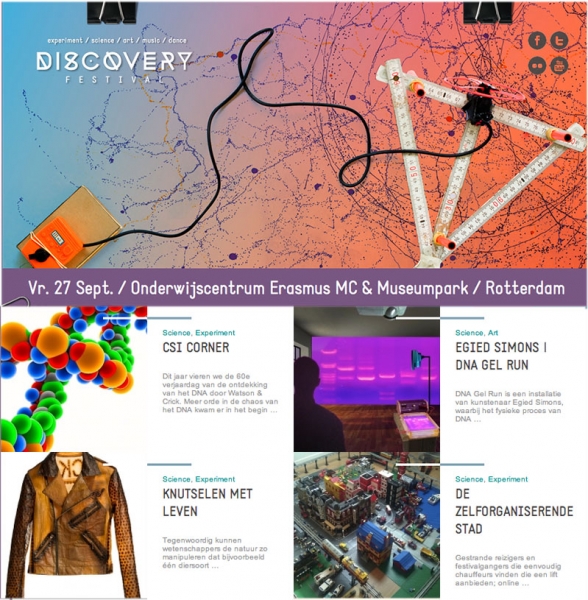 The result: in 2012, there was a Discovery Festival in both Amsterdam and Rotterdam. Moreover, the festival also got an edition in Eindhoven, organized by STRP Festival together with Eindhoven Technical University under the moniker ‘STRP meets Discovery Festival’. In Rotterdam, Science Street Foundation is responsible; in Amsterdam, Transnatural is the leading organization.