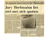 In hoeverre de kunstenaars met de salon tevreden zijn, valt eveneens te bezien. Bijna vijfhonderd zonden werk in, maar na twee strenge selecties bleek dat nog geen zestig kunstenaars waren uitverkoren te exposeren. De jury heeft niet met zich laten spotten. De leden waren, heel verstandig, met uitzondering van Hans Paalman, directeur van het Schiedamse Stedelijk, niet of nauwelijks ingewijden in de Rottterdamse beeldende-kunst-wereld. Er kon derhalve moeilijk worden beweerd dat ze bevooroordeeld waren.
