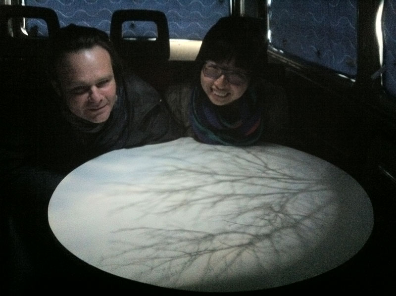 On top of the roof of a bus, which has been converted into a mobile darkroom, a big lens is pointed at the sky. The moving images of passing clouds, trees, birds, overhead wires and parts of buildings, are projected directly on a table in de vehicle. The passengers, seated in the moving darkroom, get to experience the city in an entire new way. With his project ‘Cita Morgana’, Egied Simons converts reality into a spacial, cinematic experience, you can almost touch the sky.