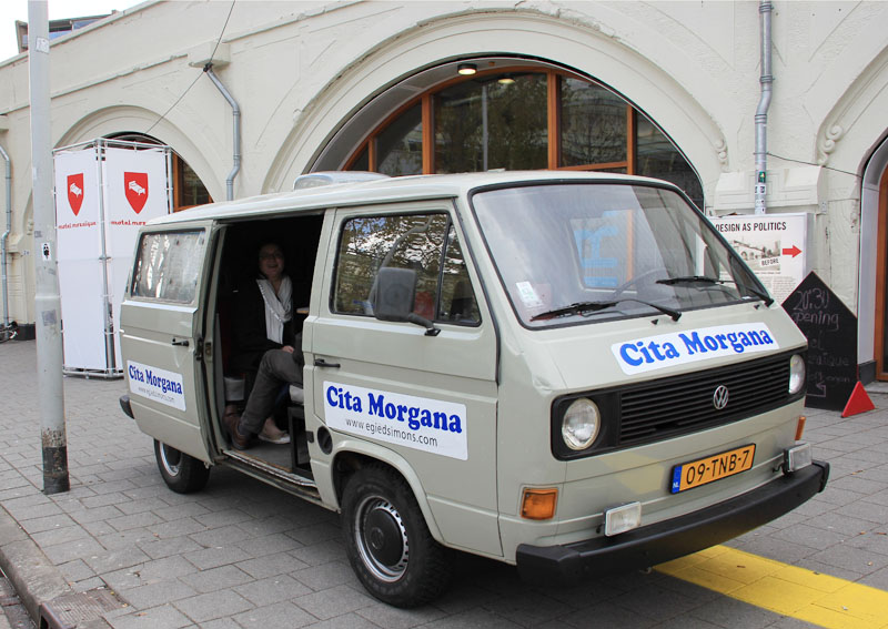 Boven in het dak van een bus, die is omgebouwd tot een mobiele donkere kamer, is een grote lens gericht op de hemel. Het bewegend beeld van voorbijtrekkende wolken, bomen, delen van gebouwen, bovenleidingen en overvliegende vogels wordt in de auto direct op een ronde tafel geprojecteerd. De passagiers, gezeten in de mobiele donkere kamer, kunnen de stad op een nieuwe manier beleven. Met zijn mobiele werk ‘Cita Morgana’ zet Egied Simons de realiteit om naar een ruimtelijke, filmische ervaring. Zo ontstaat er een een spel van diepte en verdichting en subtiele bewegingen van objecten met de lucht als achtergrond.