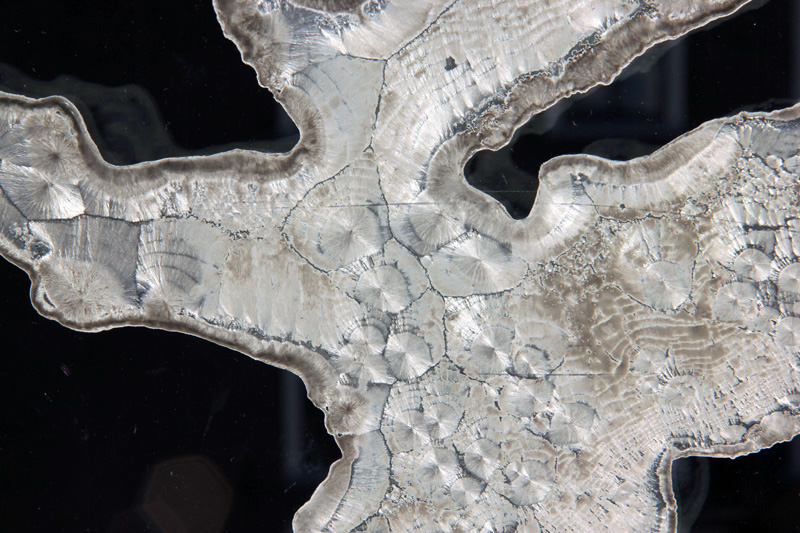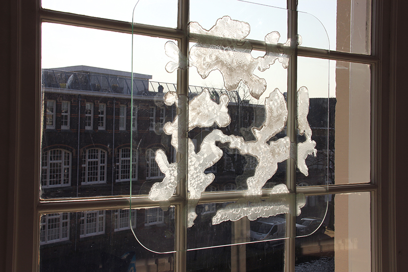 In the series Crystal files solutions of ordinary materials like salt, soda, sugar and urine crystallize on glass. the shapes were made in a way that optimized the process of crystallization.