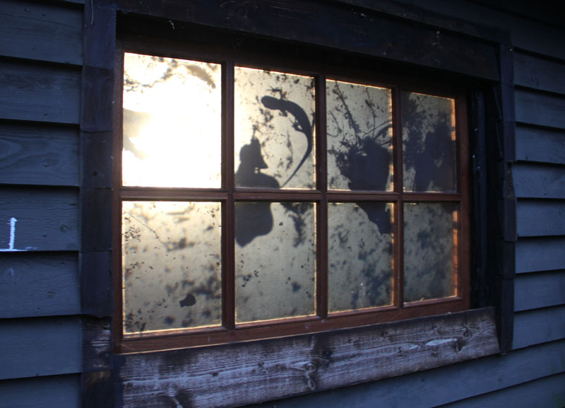 Het water leeft, maar je ziet het niet.... Met bewegende larven, watervlooien en andere insecten uit de directe omgeving transformeert Egied de ramen van het ijsbaanhuisje tot een levend kunstwerk. 100% scherp en uitvergroot is zijn real-life-time projectie eindeloos boeiend.